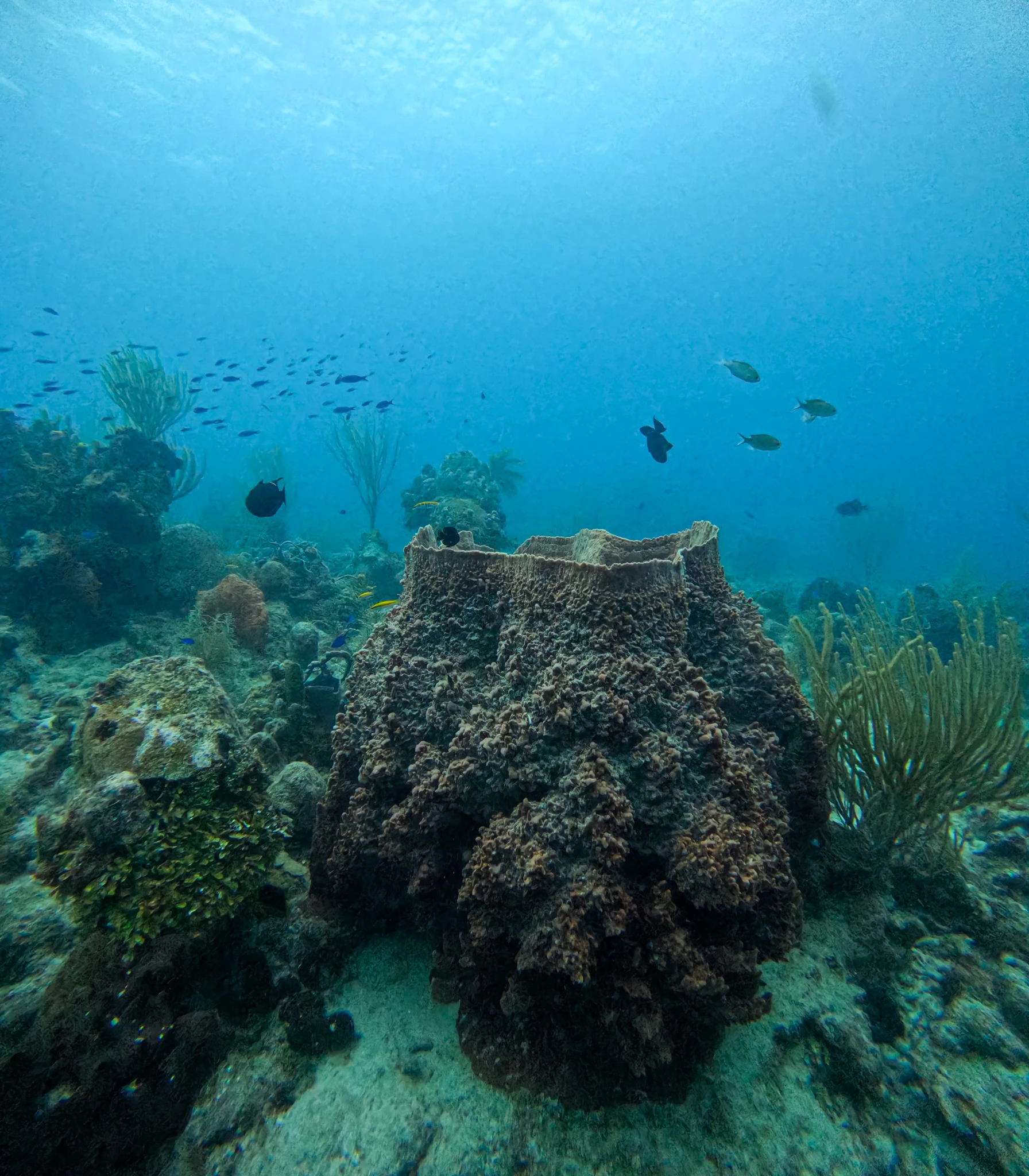 La visibilidad promedio es de 30 metros, e incluso puede superar esos valores en días de mar particularmente calmado. Estas condiciones permiten apreciar con claridad las formaciones coralinas, los grandes cardúmenes y la vida marina que caracteriza a esta región del Caribe.