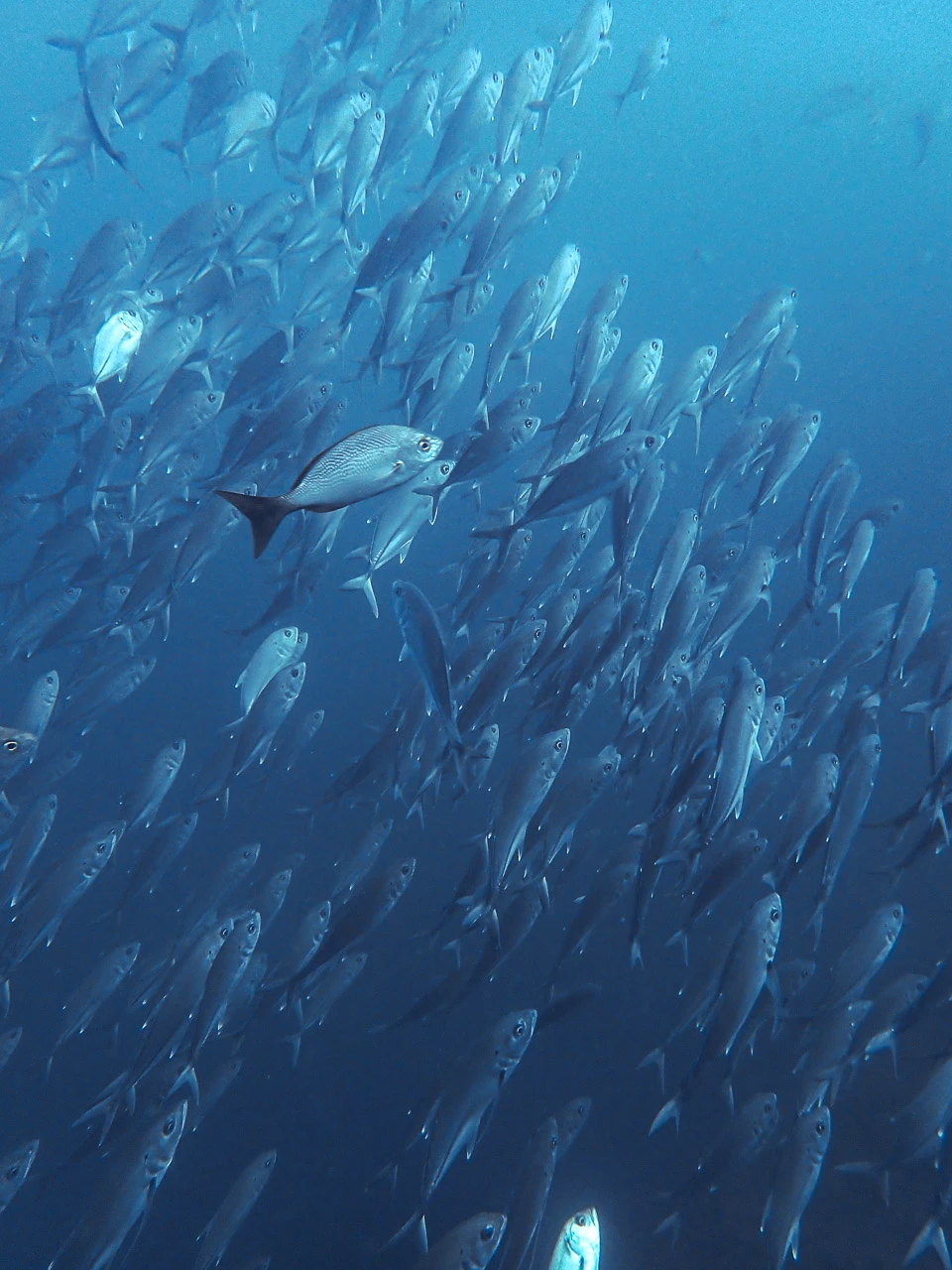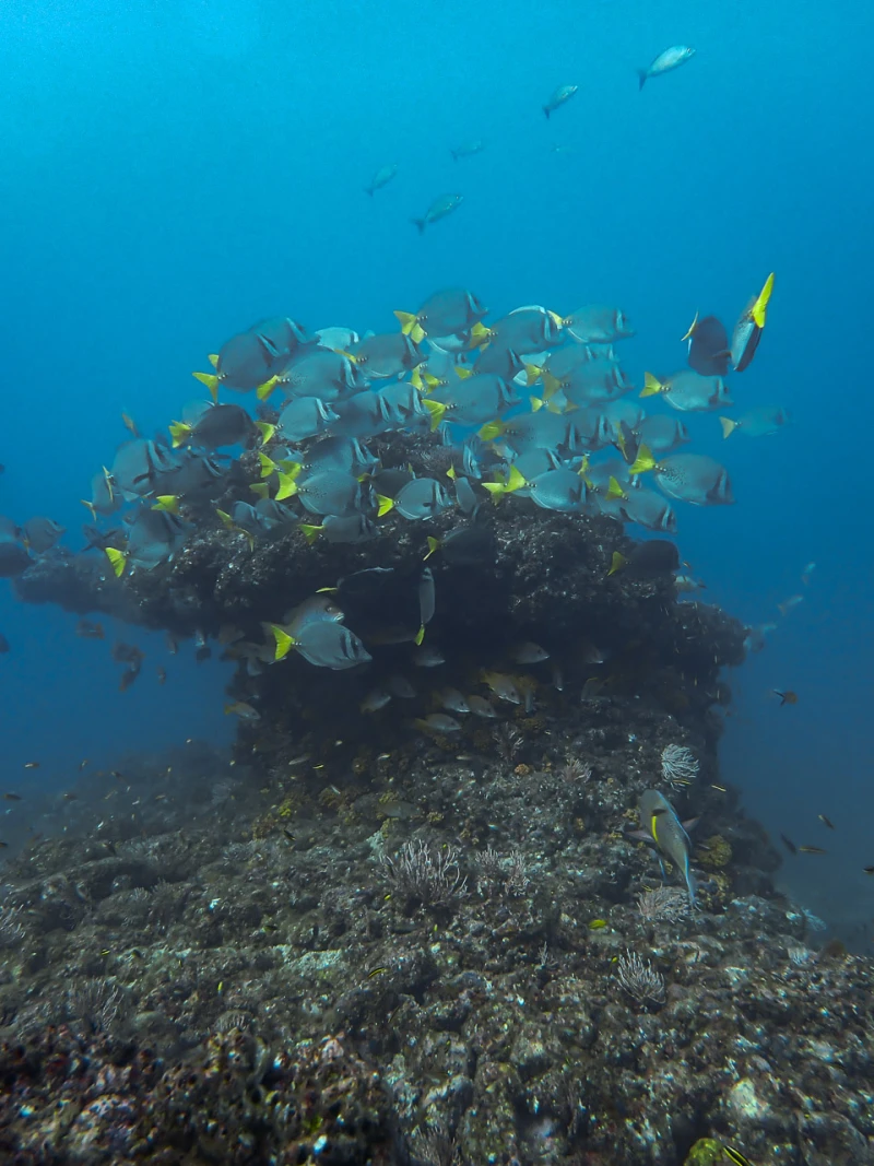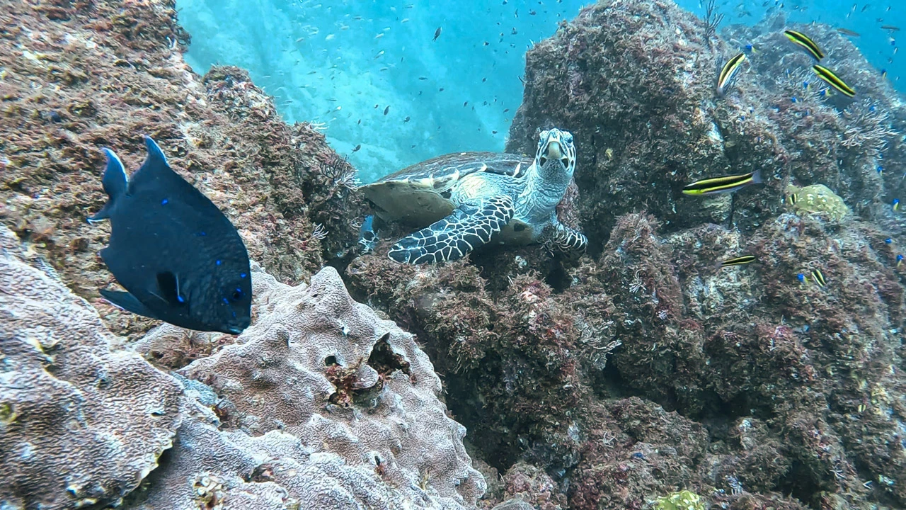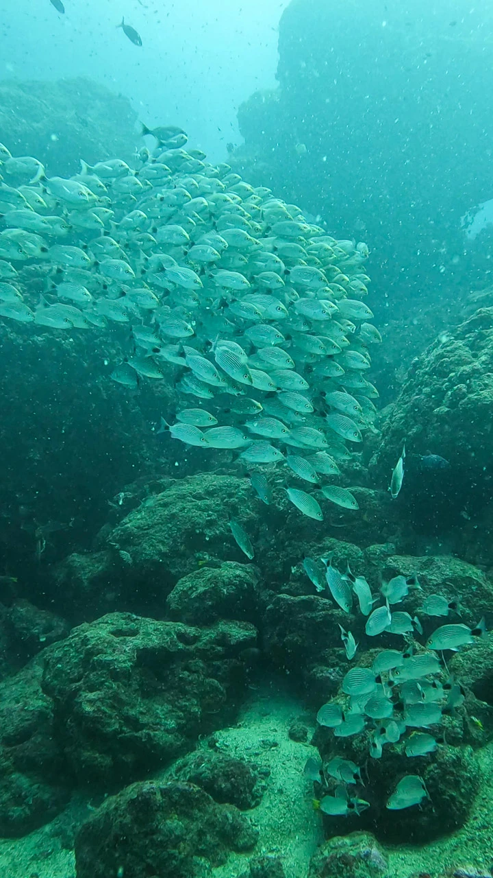 En temporada, puedes observar mantarayas gigantes, rayas águila, tortugas, y hasta ballenas jorobadas desde superficie. Además, es hogar de bancos de peces tropicales, morenas y pulpos.